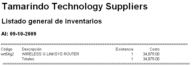 Listado general de inventariosObtenga un listado de su inventario con los respectivos costos.