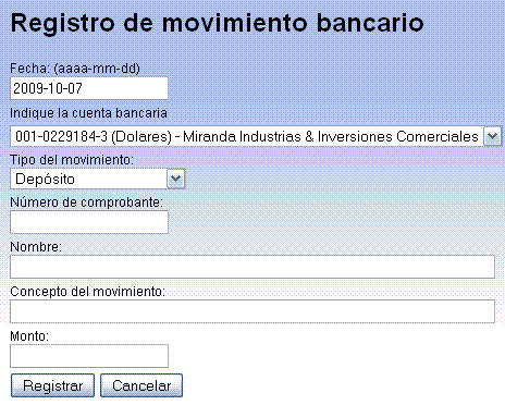 | Pantalla de registro de movimientos de cuenta bancaria |