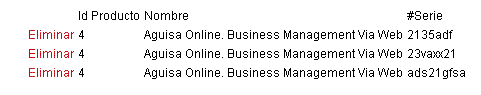 Con esta pantalla, la idea sería modificar los datos del producto según sea necesario. Si usted modifica el campo de la cantidad, entonces el sistema automáticamente va a generar un comprobante de salida o entrada según sea el caso, para respaldar el por qué ahora hay una nueva cantidad. LISTADO DE SERIES: Con el botón de listado de series, usted obtendrá una lista de las series que están registradas con el producto para el cual usted haya solicitado las series. Por ejemplo, para un caso particular que sí tiene series, la pantalla de listado de series sería como sigue: